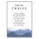 Número da mesa de nomes de convidados das Montanhas Azuis em aquarela elegante.