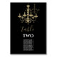 Este design apresenta um fundo preto elegante com um ouro colorido vintage. O candelabro do ouro úmido reflete sua sombra contrastando com o preto. A combinação das cores preto e dourado cria um estilo sofisticado, modesto e chic. Elegante design da mesa de casamento com elementos modernos. A configuração simples da tipografia lhe dá um estilo distinto. Os convites de casamento e outros artigos de papelaria também estão disponíveis. Personalize o número e adquira cada número mesa individualmente de acordo com quantos números de tabela você precisa.