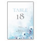 Cartão de Número de Mesa de Casamento | Mancha de aquarela em tons de azul com anêmonas azul claro. Personalize o texto, estilo de fonte, cor e tamanho. Design criado para a BarefootBride™ por © WhimsicalArtwork™ - Esta é parte de um Conjunto de Papelaria de Casamento completo com casamento, chá de bebê e outras papelarias de eventos.