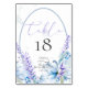 Número da Mesa de Casamento | Flores de lavanda em aquarela limpa e fresca da primavera com flores azul poeira e bagas. O verso é uma cor complementar coordenada. Personalize o texto, estilo de fonte, cor e tamanho. Design criado para o BarefootBride™ por © WhimsicalArtwork™ - Esta é parte de uma suíte completa de papelaria de casamento com casamento, chá de bebê e outras papelarias de eventos.