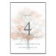 número da mesa leve e arejado, projetado para complementar a coleção de casamento "árvore nebulosa". Cores sutis e serenas em tons de rosa e cobre enferrujado, inspiradas na estação do outono.