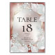 Cartão de Número de Mesa de Casamento | Fundo luminoso de pérola terracota com folhas de rosa luminosas, folhas de eucalipto, gipsófila e brilhos cintilantes. Este design fica especialmente bonito na escolha de papel Pérola Brilhante. Personalize o texto, estilo de fonte, cor e tamanho. Criamos este modelo para facilitar a personalização com suas próprias informações. Esta é parte de uma Suíte de Papelaria de Casamento completa com papelaria de casamento, chá de bebê e outros eventos correspondentes. Arte Original © por WhimsicalArtwork™.