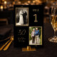 Adicione um toque significativo à celebração do seu aniversário de 50 anos de casamento com este elegante número de mesa com um layout de fotos "então e agora". Estilizado em clássico preto e dourado, combina funcionalidade e sentimento de forma encantadora, guiando os convidados aos seus lugares enquanto mostra a história de amor do casal.