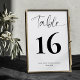 Termine a decoração do seu evento privado ou empresarial com este elegante sinal de número de mesa em caligrafia. Este cartão de números de mesa simples preto e branco apresenta um número grande no meio e uma fonte de letra cursiva elegante no topo, ótimo para usar no evento da sua empresa, leilão de caridade, jantar de aniversário ou recepção de casamento, este design minimalista é adequado para qualquer ocasião!