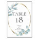 Número da Mesa de Casamento | Folhas de eucalipto em tons de azul poeira com uma moldura oval dourada. Personalize o texto, estilo de fonte, cor e tamanho. Arte original criada para a BarefootBride™ por © WhimsicalArtwork™ - Esta é parte de uma Suite de Papelaria de Casamento completa com papelaria de casamento, chá de bebê e outros eventos.