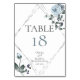 Número da Mesa de Casamento | Rosas em aquarela em azul poeirado boho cercam uma moldura prateada em forma de diamante triplo com folhagem verde-sage. O verso é o mesmo. Personalize o texto, estilo de fonte, cor e tamanho. Arte original criada para a BarefootBride™ por © WhimsicalArtwork™ - Esta é parte de uma Suite de Papelaria de Casamento completa com papelaria de casamento, chá de bebê e outros eventos.