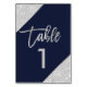 Tipografia prateada no bloco de cor azul marinho de ouro, rosa azul personalizável, e falso prata geométrico número da mesa, perfeito para o elegante casamento de praia,