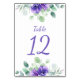 Números de tabela com uma aquarela floral de topo e fundo de lindas anêmonas roxas e verde. Nota: Você precisará comprar e editar esses cartões de mesa, um de cada vez, se quiser que os números sejam pré-impressos.
