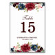 Numeração De Mesa Número da Tabela de Boho Russo Floral Marinho Verm