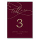 Este número romântico da mesa de caligrafia romântica é perfeito para um casamento simples. O clássico moderno design apresenta espirais de rico e turbilhões brancos com belíssima e elegante tipografia de folha de ouro de champanhe com letra falsa. A placa impressão na frente e atrás (lado duplo). Adicione cada número de tabela que você precisa ao seu carrinho individualmente. Nota: Este design não apresenta folha de ouro real. É um gráfico de alta qualidade feito para se parecer com folhas de ouro.