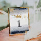 Número da Tabela de Cerimônia de Casamento de marinho e Dourado. Este na moda e elegante Convite para Chás de Casamento apresenta uma magnífica cor de água do Ombre pintada à mão. Localizar itens correspondentes na Coleção de Marinhos e Dourados.