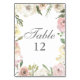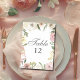 Um elegante buquê floral primavera de peões cor-de-rosa pincelados e rosas de marfim cria uma bela borda de flor de aquarela para este cartão de número da mesa de casamento da primavera. As manchas de sábio saem decoradas em meio ao conjunto de cor de pêssego de flores que cercam a bela tipografia moderna.