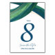Parte da suíte de convites para o casamento do Sweeping Seagrass, esses Números de Tabelas de na moda apresentam uma faixa de verdes pintados e azuis, derrames sutis de ouro (folha simulada) e texto de marinho que pode ser personalizado de acordo com o seu gosto. Os gráficos são duplicados no verso para facilitar a visualização a partir de vários ângulos. Uma maneira simples e bonita de destacar a aparência geral das suas mesas de casamento.