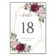 Números de mesas de casamento florais elegantes e borbulhantes com uma estrutura geométrica dourada cercada por rosas vermelhos e esmagadores com verde. Itens correspondentes disponíveis.