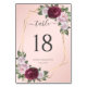 Burgundy geométrica elegante e esfregando números florais de mesas de casamento. Itens correspondentes disponíveis.