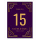 Este design apresenta uma elegante borda de ornamentado de ouro contra um fundo roxo escuro.
