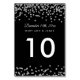 Design de casamento elegante com o Silver Faux Glitter Confetti Black e o texto do número da tabela personalizada.