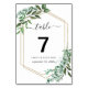 Número de Mesa com Moldura de Eucalipto e Folhas em Aquarela Dourada. Itens compatíveis disponíveis.