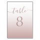 Experimente um design elegante e contemporâneo com texto em ouro rosa empoeirado apresentado contra um fundo gradiente impressionante. Para personalizar, basta atualizar o número da mesa e prosseguir para adicioná-lo ao seu carrinho. Repita este processo para cada número de mesa que você precisar.