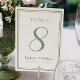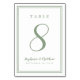 Um modelo para qualquer número, este simples e elegante design de número de mesa de casamento apresenta um design contemporâneo com uma borda de moldura dupla em verde musgo sobre um fundo branco crocante. O design sofisticado fornece uma elegância atemporal e moderna. Personalize o design da mesa de casamento com seu nome, data de casamento e número da mesa em letras e caligrafia verde musgo na moda. O verso do cartão é uma duplicata da frente. Personalize facilmente e encomende um para cada mesa com os números de mesa individuais.