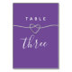 Ajude os convidados a encontrar seus lugares com estilo com este cartão de número de mesa de casamento roxo elegante. Com um fundo violeta chic, um coração de corda prateada romântica e uma fonte caligráfica sofisticada, este design minimalista complementa perfeitamente uma configuração de recepção de casamento moderna e atemporal.