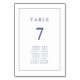 Número de Mesa de Casamento Simples Elegante. Este número de mesa de casamento com borda minimalista e elegante apresenta uma fina borda azul-marinho com texto e letra azul-marinho. Itens correspondentes estão na Suite de Casamento Navy Classic Border.