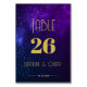Um céu noturno com matiz roxa e uma fonte elegante moderna é a design para esta carta de mesa de Casamento. As informações são facilmente alteradas para seu próprio design pessoal. O texto é facilmente alterado para os seus próprios números de tabela, nomes personalizados e data.