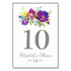 Placa de número de tabela de Chá de panela floral com flores bonito roxas e violetas de aquarela. Personalize cada placa numérica e adicione-a ao carrinho individualmente.