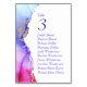 Linda tinta lavou papelaria de recepção de casamento em rosa, azul, roxo e prata. Esta elegante placa de número da mesa de casamento apresenta um laço etéreo de tintas coloridas em ametista e framboesa; acentuado com prata. Edite facilmente o modelo usando a ferramenta de personalização do Zazzle. Entre em contato conosco se precisar de assistência amoreamore@paulinebenjes.com. Número da Tabela de Recepções de casamento de Prata Rosa Azul.