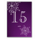 Placa de número da mesa de flocos de neve roxos e brancos para complementar o conjunto de casamento correspondente.