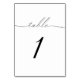 Este elegante número da mesa de caligrafia negra é perfeito para um casamento simples. A design neutra apresenta uma carta minimalista decorada com tipografia romântica e caprichosa. A placa impressão na frente e atrás (lado duplo). Os números podem ser alterados no campo de personalização.