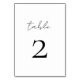 Cartão de número mínimo da tabela de script. Script preto sobre fundo branco. Parte de uma coleção de casamento.