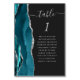 A borda esquerda desta elegante e moderna placa de número da mesa de casamento apresenta uma cor azul-lacrimogênea, borda com falso brilho prateado. A palavra "mesa" aparece em um guião de escrita manual de cinzas prateadas sobre fundo preto. Adicione os nomes dos seus convidados que estão atribuídos a cada mesa.