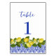 Numeração De Mesa Números de Mesa com Limão Italiano e Azulejos Azui