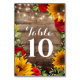 Números de mesa de casamento russo de girassol e Rosas. Apresentando girassóis amarelos e rosas vermelhas sobre um fundo de pranchas de madeira rústicas. Os produtos correspondentes podem ser encontrados aqui: https://www.zazzle.com/collections/rustic_sunflower_and_roses-119858480821565936