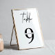Termine a decoração do seu evento comercial ou privado com este sinal de número de mesa minimalista em preto e branco. Use este cartão de número de mesa de gráfico de assentos moderno para o seu evento de gala, festa de negócios ou recepção de casamento, este design minimalista irá adequar-se a qualquer ocasião!