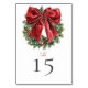 Charme de Feriado para Cada Mesa Adicione um toque festivo à sua recepção com estas Cartões de Número da Mesa de Casamento Clássico de Natal. Cada placa apresenta uma lindíssima camada de aquarela pintada à mão, adornada com verde-luxuoso e um arco vermelho ousado — trazendo calor, elegância e espírito sazonal às suas configurações de mesa. Perfeito para os casamentos no inverno, esses números de tabelas são funcionais e decorativos, ajudando os hóspedes a encontrar seus assentos e aprimorando sua celebração inspirada no feriado.