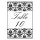 Números de Tabela de Recepção de Casamento Personalizados com uma elegante cor damasco preta e branca como uma borda superior e inferior e um texto de fonte de script em ambos os lados. Nota, cada número do número do cartão de mesa deve ser alterado e adicionado ao carrinho de compra. O padrão tem um design floral bonito e detalhes de rolagem. Chic sofisticado ou retrô vintage como design de noiva.