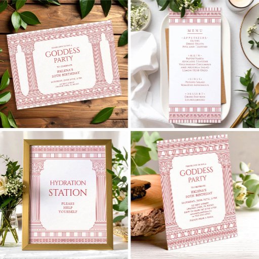 Grécia antiga ou tema Roma para a festa perfeita de deusa (aniversário, solteira, véspera de ano novo, solstício ou chá de fraldas). Junte-se ao seu círculo de deusa para celebrar e honrar aquelas mulheres especiais à sua volta. Personalize as cores GRÁFICAS e DE FUNDO. Verifique a coleção correspondente para COORDENAR ITENS. Obras de arte originais da PUPSIKU STUDIO. Produtos exclusivos a 100%.