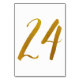 Tabela Número 24: Esta placa de número de tabela de script de pincel casual é definida em uma folha de ouro falsa. IMPORTANTE: A aparência mostrada é um efeito impresso. Não é folha de papel real. Se você não quiser esse efeito, poderá excluí-lo assim: 1) Clique em "Personalizar mais. 2) Localize a imagem que diz folha z-gold e elimine-a. Em seguida, escolha sua própria cor a partir das cores de fundo.