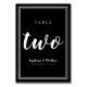 Esta design foi criada para comemorações íntimas de casamento. A design da Tabela de Casamento Simples, Mínima e elegante Número Dois apresenta um design contemporâneo com uma borda de dois quadros em branco nítido sobre fundo preto chic. O design de chic oferece eterno, mas sofisticação moderna. Personalize a design de mesa de casamento com seus detalhes de casamento em letras brancas nítidas e roteiro. A parte traseira da placa é uma duplicata da parte frontal. Encomenda um para cada mesa com os números de tabela individuais. O Mesa ONE to TEN foi projetado individualmente e está disponível na minha loja InvitationSuites no Zazzle. Embora tenha criado especificamente a um local menor, se precisar de números adicionais, envie-nos um e-mail para InvitationSuites@gmail.com.
