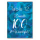Elegante Ocean Blue 100 e Maravilhosa Festa de aniversário Table Number Este é um número especial único da tabela de aniversário de arte Blue Ocean Blue especialmente projetado para seus amigos que estão fazendo 100 anos e maravilhosos! Personalize este número de tabela com seu nome. Planeje sua festa com mais festas de aniversário da nossa loja! Seu amigo ou família vai adorar uma elegante festa de aniversário azul-oceano! Lembre-se de alterar o número da tabela e solicitar cada placa numérica da tabela separadamente.