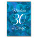 Elegante Ocean Blue 30 & Flirty Festa de aniversário Table Number Este é um cartão especial único de aniversário de arte Blue Ocean Blue especialmente projetado para seus amigos que estão fazendo 30 & Flirty! Personalize esta placa de mesa com seu nome. Planeje sua festa com mais festas de aniversário da nossa loja! Seu amigo ou família vai adorar uma elegante festa de aniversário azul-oceano!