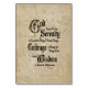 "Deus me conceda a SERENIDADE para aceitar as coisas que não posso mudar; a CORAGEM para mudar as coisas que posso; e a SABEDORIA para saber a diferença." Paz, força, cura e compreensão num momento de agitação, desespero ou incerteza. Conhecido como "A Oração da Serenidade", Associado à Recuperação e aos Programas de 12 Etapas. Usado por AA (Alcoólicos Anônimos). Oração escrita por Reinholt Niebuhr. Design: Caligrafia negra com fundo antigo natural. Paula Bragg 2011 Texto: "Deus me conceda a SERENITY para aceitar as coisas que não posso mudar; a CORAGEM para mudar as coisas que posso; e a SABEDORIA para saber a diferença."