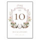 Adicione um toque de charme de país à sua recepção de casamento com os números da mesa floral de cor de água da ferradura ocidental do nosso país! Você não só pode personalizá-lo com o nome do casal, data, monograma e número da tabela, como também adiciona um elemento exclusivo e na moda ao seu dia especial. Crie facilmente uma experiência memorável e personalizada para os seus convidados com este número de tabela fácil de personalizar. Design por e pintados à mão - florais de aquarelas e trabalho de arte de ferradura por Moodthology Papery