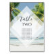 Esta design apresenta palmeiras tropicais em uma praia. O belo verde das palmas contrasta com o céu azul e a água. O losango branco opaco leva à frente a tipografia moderna. Uma fusão perfeita de modernos e quicos. Design verde-palmeira ideal para um casamento de praia tropical. Design da mesa de casamento de praia com elementos modernos. Os convites de casamento e outros artigos de papelaria também estão disponíveis. Personalize o número e adquira cada número mesa individualmente de acordo com quantos números de tabela você precisa.