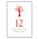 Árvore vermelha simples de inverno com um ouro de papagaio colorido com números gráficos de mesa de Natal. Personalize com seu próprio evento. Uma ideia excelente para ajudar os hóspedes a encontrar seus assentos no feriado de Natal ou festa ou evento festivo especial. Você deve alterar o número para cada número necessário e adicioná-lo um de cada vez. Arte e design por Sarah Trett para www.mylittleeden.com