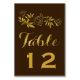 Folha de ouro, peões de vintage floral número de mesa de casamento floral cartão de lugar com flores de pelúcia silvestre de folha de ouro despedaçada em fundo castanho, com a bela escrita, tipo carolina. Este elegante, elegante e na moda é parte de uma coleção ou conjunto de casamentos. É um modelo perfeitamente personalizável para um moderno e contemporâneo ou um outono ou casamento no inverno tradicional. Observe que não há folha de ouro real, mas apenas imagens impressas.