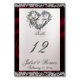 O cartão de mesa temático romântico do casamento apresenta um fundo branco de pearl com fita burgundy e bordas sparkle, na moda e fontes elegantes. Perfeito para o casamento simples e elegante. Também disponível com fita colorida diferente para as cores do tema do casamento. Projetado para coordenar com a coleção "Corações Românticos, Fita e Faísca em Pérola". Para alterar os detalhes, clique em "Personalizar". Para mover o texto ou alterar o tamanho, a fonte ou a cor do texto, clique em "Clique para personalizar mais"