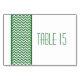 Chic e placa de número da tabela de borda Chevron moderna com uma borda simples de padrão de canal em verde escuro e branco. Esta design de na moda vai dar o tom para um casamento elegante. Fácil de personalizar, basta adicionar o(s) número(s) de tabela apropriado(s) no campo de texto fornecido. Clique em "Personalizar" para encontrar mais opções de personalização.